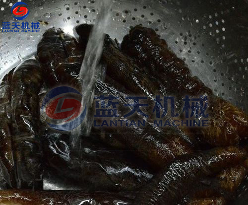 第二步:清洗海參:海參較難清洗干凈,所以取出內臟后,將海參反復清洗干凈,一般清洗5次至干凈止。