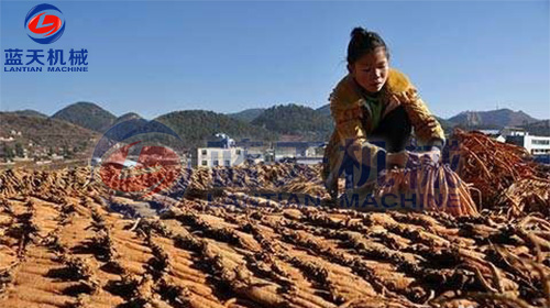 黨參曬至根條發軟,折彎不斷時,趁熱在地方順勢旋轉揉搓3-5分鐘,使根條更柔軟,并脫除部分根毛、泥土、就地繼續晾曬。倒胚后,曬至根條溫熱(30-40度),然后上堆,覆蓋塑料膜繼續悶曬,提高根條溫度及柔軟程度。