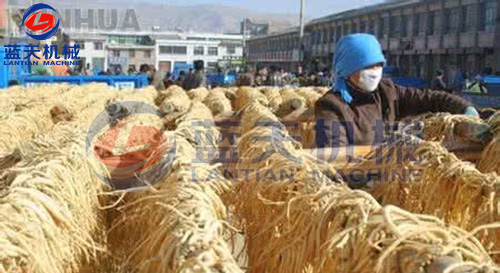 先清除地表,然后搶晴天土壤適應時用釵角鋤從一側開挖,注意不可從根條挖破挖斷,挖起后清去泥土,符合要求的運回加工。新鮮黨參以根條較長,粗1厘米以上,無支根、尾根少、漿氣足、無損傷者為上品。
