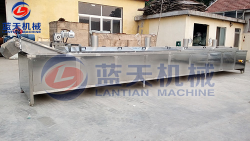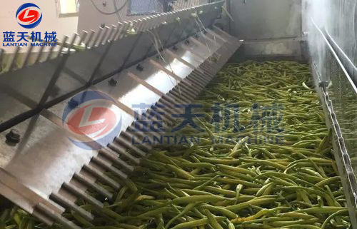 將洗干凈的原料根據產品要求分別切成片、絲、條等形狀。預煮時,因原料不同而異,易煮透的放沸水中焯熟,不易煮透的放沸水(水溫一般在150℃以上)中略煮片刻,一般燙漂時間為2~4分鐘。葉菜類最好不燙漂處理。