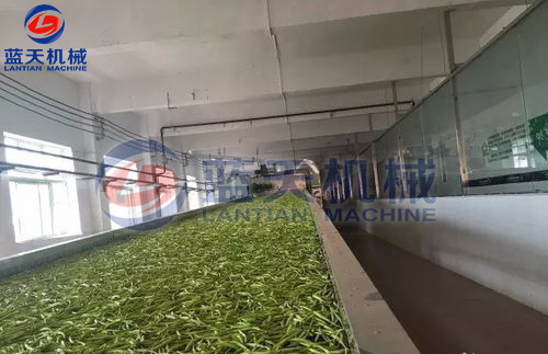 預煮處理后的蔬菜應立即進行冷卻(一般采用冷水沖淋),使其迅速降至常溫。冷卻后,為縮短烘干時間,可用離心機甩水,也可用簡易手工方法壓瀝,待水瀝盡后,就可攤開稍加涼曬,以備裝盤烘烤。