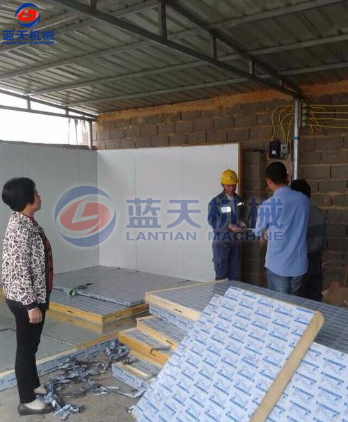 烘房板材包括底板和門板的厚度根據實際情況,可采用5-10公分左右的厚聚氨酯發泡板保溫,底板內外鍍鋅板。一方面這種材料具有良好保溫效果的恒溫室,輕便安裝的同時,具有一定的耐磨和耐壓性能、在一般良好和惡劣的環境中都能夠適應。使用年限十年以上;另一方面能確保烘干房循環均勻風,保證物料在一個緩慢均勻的環境中實現水分的蒸發,保證在整個烘干房內物料的烘干均勻度。