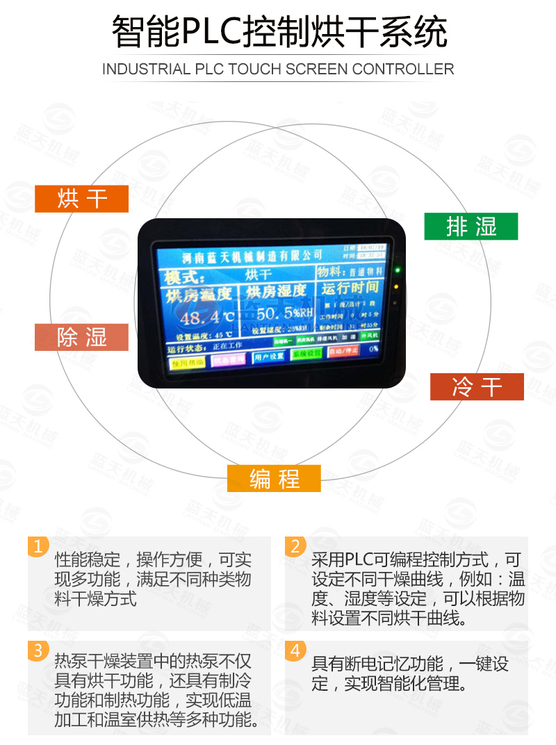 1.熱泵主機產(chǎn)生的熱量經(jīng)過轉(zhuǎn)換器轉(zhuǎn)換成溫度適宜的純凈熱風由風機輸送到烘干機內(nèi)部;