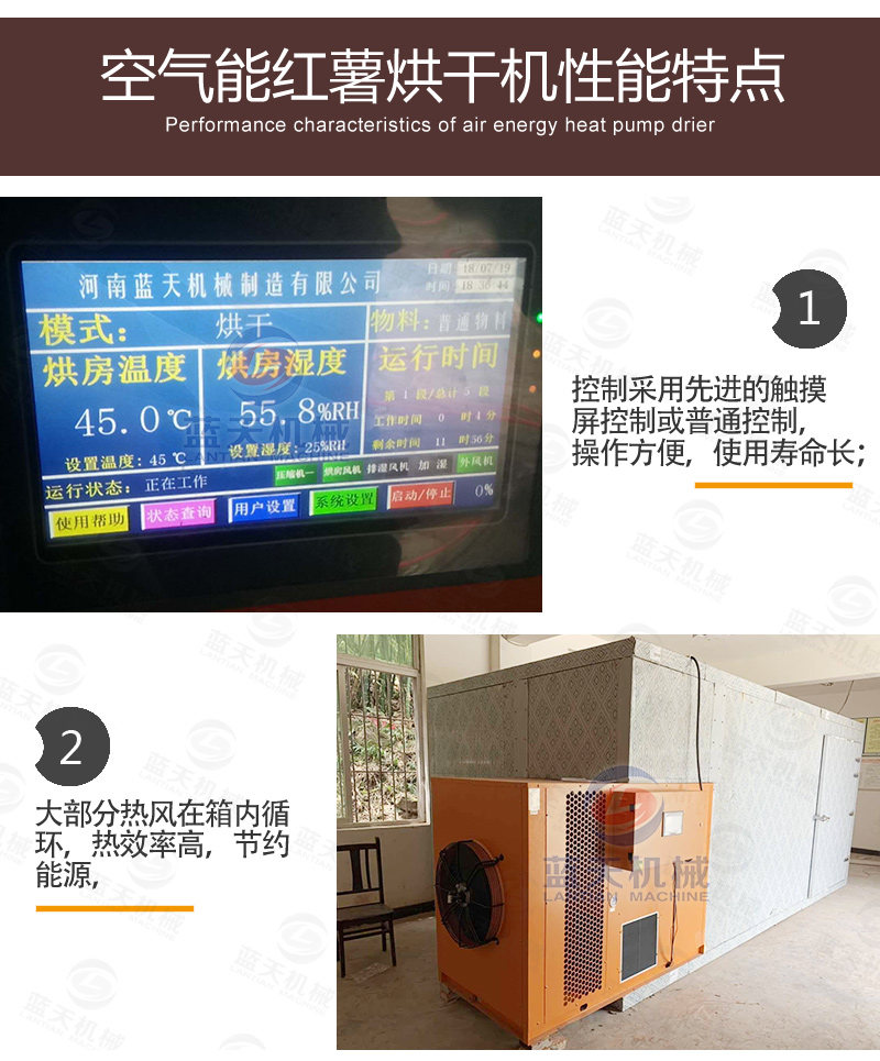干燥烘干地瓜。干燥烘干地瓜有兩種辦法,一種是通過日曬的辦法,一般不下雨的情況下,在陽光下曬4-5天即可,要定時翻轉(zhuǎn)。另一種辦法是利用地瓜干烘干設(shè)備進行烘干地瓜,這種辦法適合量大,且不受天氣影響。開啟地瓜干烘干設(shè)備。將已經(jīng)擺好托盤的地瓜推進去地瓜干烘干機內(nèi),關(guān)閉房門。通過智能控制面板,設(shè)置好溫度和濕度,一般設(shè)置為四個階段,一階段設(shè)定45℃,定時2~3小時。二階段溫度設(shè)定50℃,定時3小時。三階段溫度設(shè)定60℃,定時3小時。四階段溫度設(shè)定70℃,定時3小時。一般用時12個小時即可。