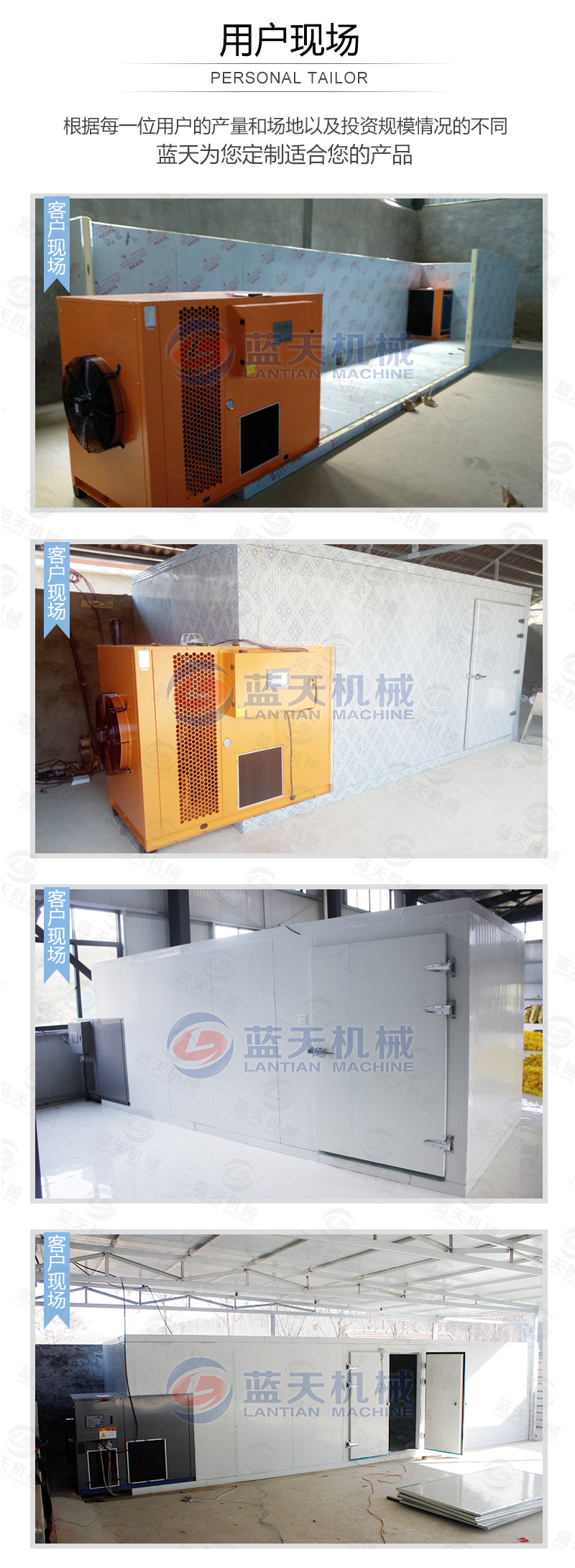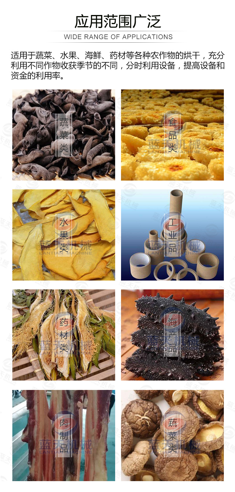 三:設(shè)定木耳烘干機(jī)的運(yùn)行參數(shù),要注意在整個(gè)木耳烘干過程中前段用35-45度低溫主要進(jìn)行除去濕度,因?yàn)轷r木耳的含水率很大,到中段時(shí)可以適當(dāng)升溫到50度,進(jìn)行升溫排濕,后一階段觀察木耳含稅率下降情況,可適當(dāng)升溫到55度,在經(jīng)過十多個(gè)小時(shí)的連續(xù)烘干除去濕度后,木耳烘干了。