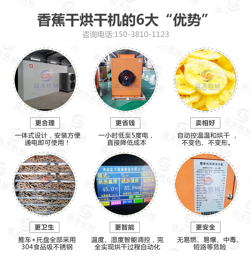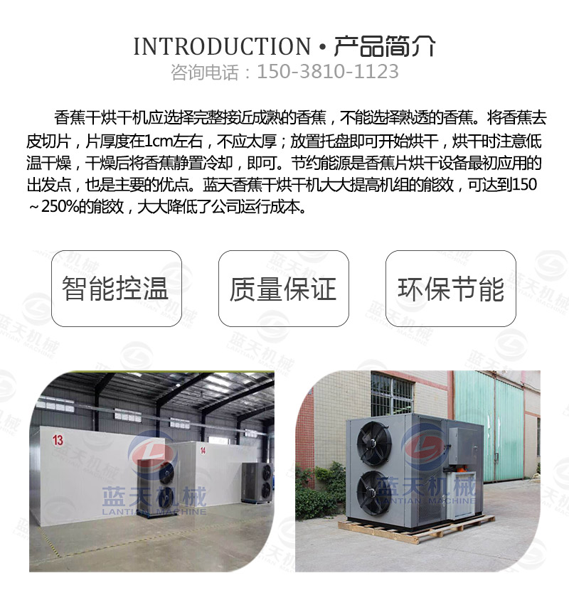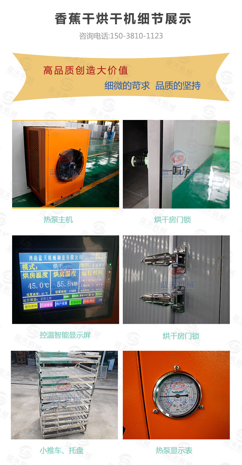 香蕉干烘干機使用的是熱泵空氣能加熱系統,所以香蕉片烘干過程中受熱更加均勻。