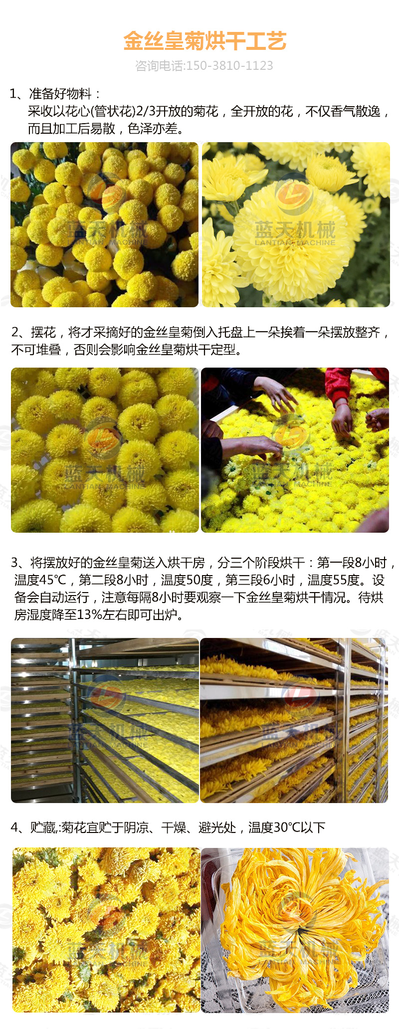 三、烘干品質(zhì)好,熱效率高。菊花烘干機設(shè)備采用電加熱,烘干溫度穩(wěn)定,以及特有控制系統(tǒng),能準確控制烘干機的溫度,因此,烘干菊花品質(zhì)好。