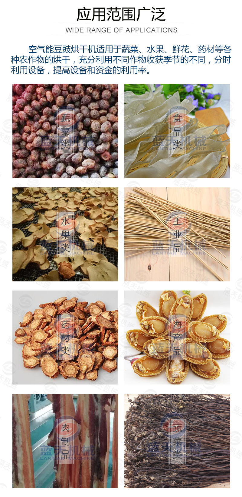 豆豉烘干機(jī)還可以用在魚(yú)粉、咖啡豆、蒜片、飼料顆粒、皮革污泥、大豆豆粕、油茶籽、山茶籽、玫瑰花、魚(yú)干,蔬菜,食品,辣椒等材料的烘干處理。