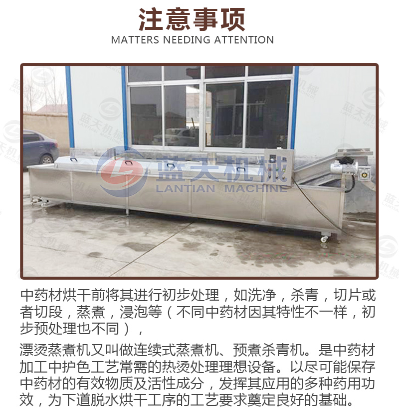 中草藥種類繁多,其處理程序主要有:洗滌→清理和選擇→去皮→修整→蒸、煮、燙→浸漂→熏硫→發汗→烘干與干燥。因藥材品種要求和產地習慣不同,以上程序不是每種中藥材都需要,但一般以下幾種方法較為普遍: