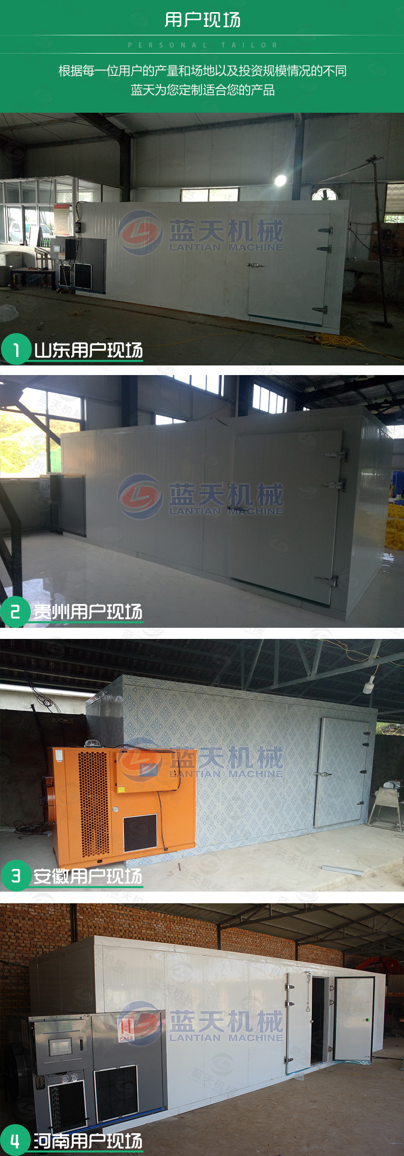 無(wú)花果鮮果含水以游離水、膠體水及化合水狀態(tài)存在,含水率達(dá)75-80%,含糖高,如果自然曬干時(shí)太陽(yáng)光強(qiáng)度不夠,很難把無(wú)花是干透,使用空氣能無(wú)花果烘干機(jī)在于溫度、濕度、風(fēng)速、風(fēng)量可控。視塊狀大小一般初期1小時(shí)無(wú)花果烘干設(shè)備設(shè)置溫度宜在70-85℃的范圍,在短期內(nèi)使無(wú)花果水分大量的蒸發(fā),這4小時(shí)的排濕控制在50%,二段8小時(shí)的時(shí)間,溫度以60-70℃的范圍為基準(zhǔn),稍縮短排濕時(shí)間,濕度控制為30%,三段5小時(shí)的時(shí)間,溫度降低50-60℃,濕度繼續(xù)降低至10%;整個(gè)過(guò)程約18小時(shí),無(wú)花果含水率降到15%以?xún)?nèi)。如為整顆烘干,需要的時(shí)間更長(zhǎng)一些,先將果子均勻的鋪放在架子車(chē)上,推入烘干房干燥25-30小時(shí)后,再推出烘房外陰涼的地方放置24小時(shí),再推入烘房?jī)?nèi)進(jìn)行第二次的烘干。無(wú)花果烘干機(jī)24小時(shí)的烘干量視機(jī)型規(guī)格決定,少的以600-800斤一個(gè)批次,多的2000斤一個(gè)批次,10000斤甚至更大產(chǎn)能則考慮對(duì)吹及組合方式即可。這里提到產(chǎn)量,朋友們就會(huì)知道無(wú)花果烘干機(jī)的機(jī)型是有不同型號(hào)的,那無(wú)花果烘干機(jī)價(jià)格就是因型號(hào)不同而異了,這個(gè)需要了解客戶(hù)您的具體需求。