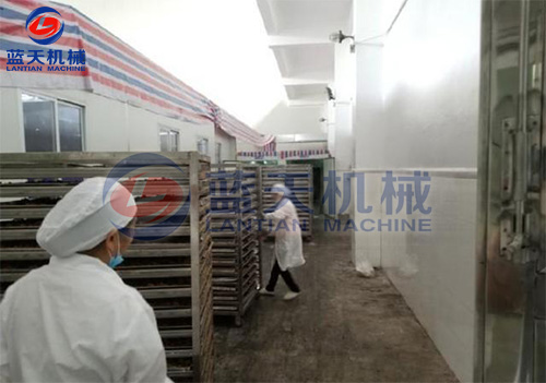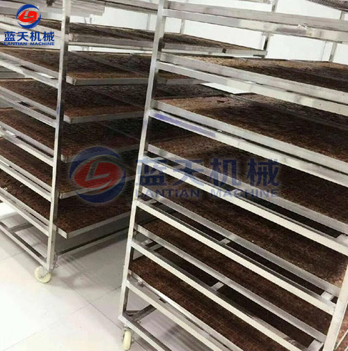 紅糖烘干工藝:將紅糖磚切成方塊狀,置入托盤中,在物料架中分層放好,注意層與層之間的距離,將物料車推入烘干房,開始啟動溫濕控制系統(tǒng),在紅糖烘干機(jī)的使用過程中,第一個小時可以只升溫不排濕,因為在工作的第一階段,烘干房里面的濕度很低。第二階段設(shè)定為烘干加排濕的工作程序模式。紅糖烘干機(jī)帶有余熱回收功能。在排濕過程中的熱量會重新參與到烘干房的熱循環(huán)。排濕過程當(dāng)中不會造成熱量浪費(fèi),從而降低了運(yùn)行成本。