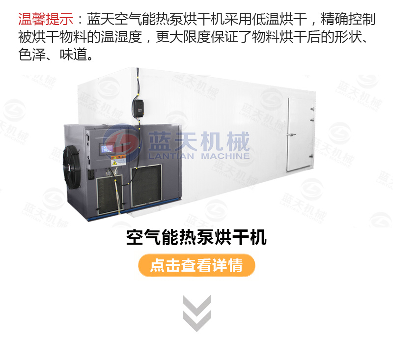 1.熱泵主機產(chǎn)生的熱量經(jīng)過轉換器轉換成溫度適宜的純凈熱風由風機輸送到烘干機內部;