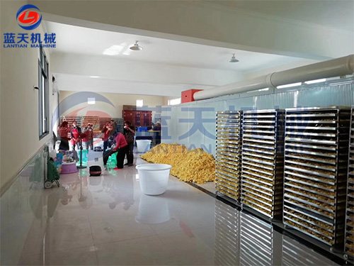 河南山藥片烘干機烘干現(xiàn)場